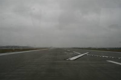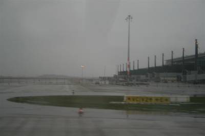 Nach diesen beiden theoretischen Teilen ging es dann im Bus am neuen Terminal vorbei und auch über die Rollwege und die südliche Start- und Landebahn (07R/25L) des neuen Flughafens, die mit 4 Kilometer Länge und 60 Meter Breite auch für die größten Verkehrsflugzeuge der Welt wie den Airbus A380 geeignet ist. Auf dem Vorfeld ist noch Platz für zwei weitere Terminal-Ausbaustufen zur Erhöhung der Fluggastkapazität, die Anbindung würde überirdisch über eine große Brücke an das Hauptterminal erfolgen. Daneben gibt es aber auch an den Seitenpiers noch Erweiterungsmöglichkeiten.